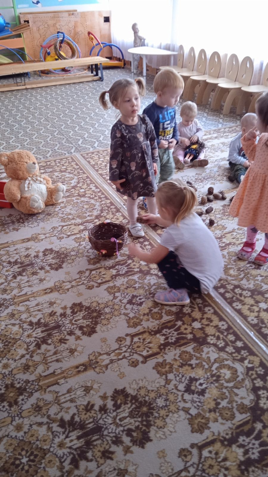 По дороге они встретили зайку????, поиграли с ним и угостили вкусной морковкой????. Повстречались с мишкой???? , угостили его мёдом и помогли собрать шишки в корзину.