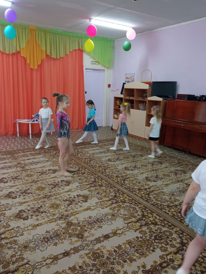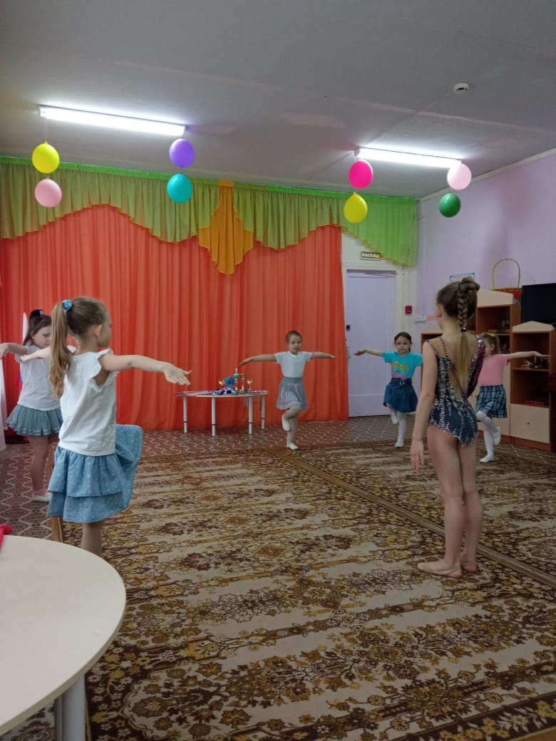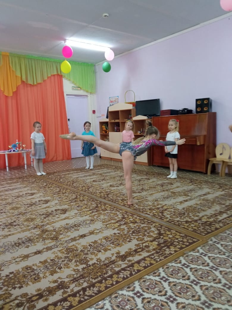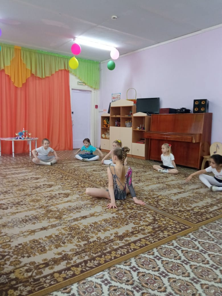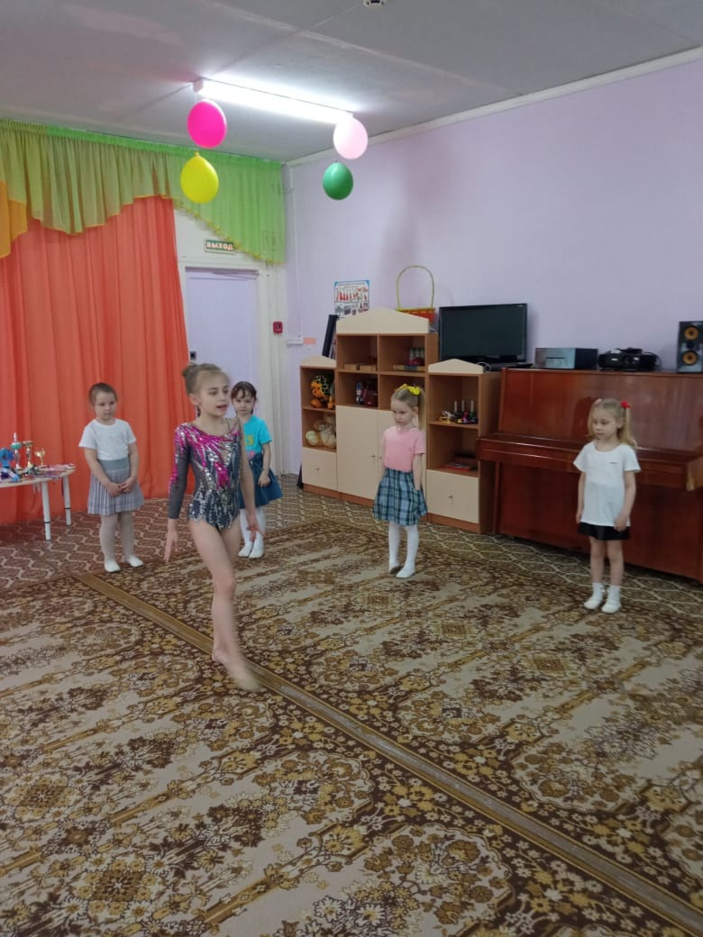 ✨️Саша не только рассказала о "тайнах и сокровищах" этого вида спорта, но и показала элементы художественной гимнастики которые регулярно использует в своих выступлениях. Она смогла заинтересовать девочек художественной гимнастикой, они вместе попробовали выполнить базовые упражнения, и подготовились к своему первому гимнастическом выступлению.