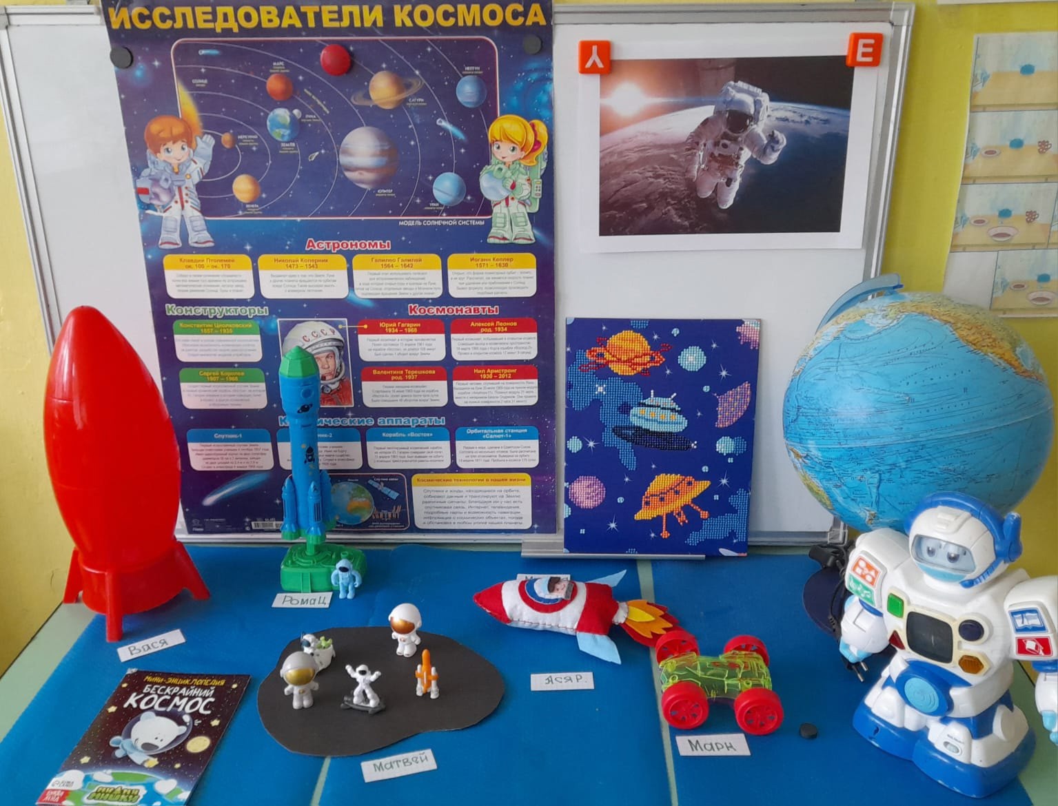 В течение недели они говорили о космосе, космонавтах, о чёрных дырах. Ребята осваивали новую космическую разминку, чтобы непременно полететь в космос. Учились у героев сказок и мультфильмов быть космонавтами. Лепили, рисовали, выполняли аппликации на космическую тематику. Наши родители приняли участие в книжной выставке, где показали свои любимые книги про космос. Много нового, интересного и удивительного открыла неделя космонавтики юным исследователям. Мы верим, что это первые шаги к исполнению мечты стать настоящими космическими исследователями.
