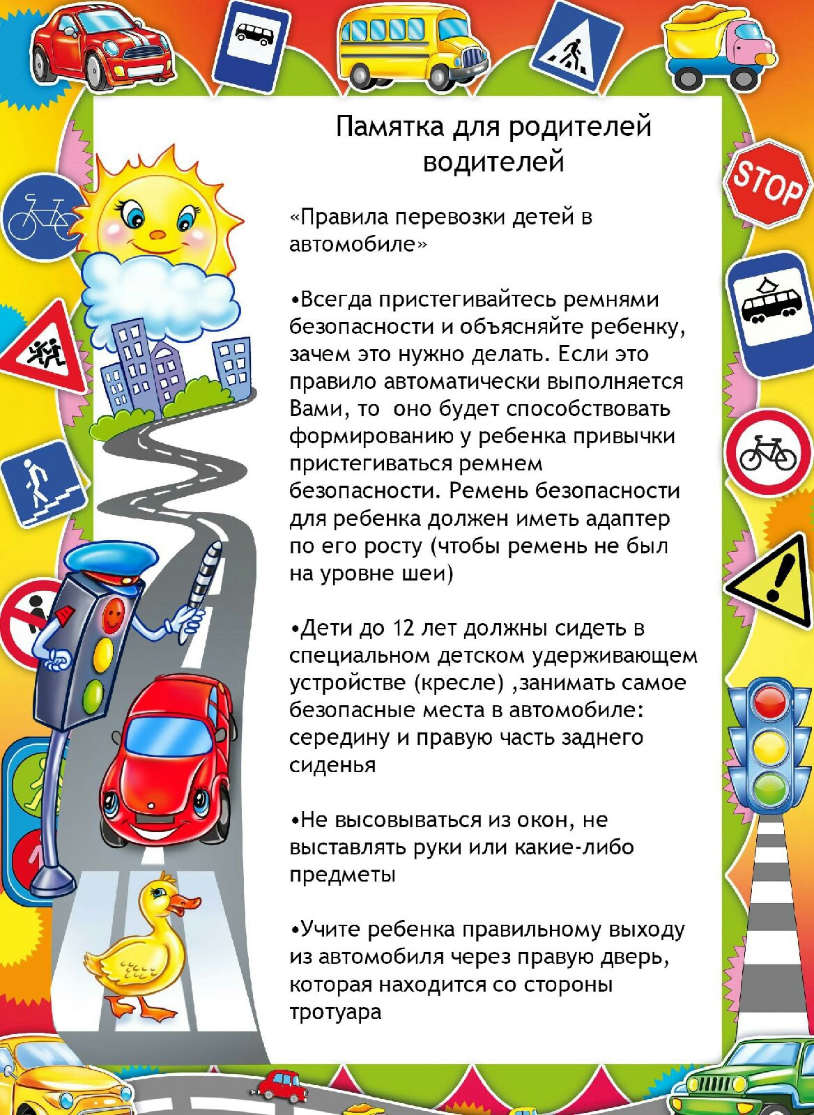 никогда в присутствии ребенка не нарушайте Правила движения;